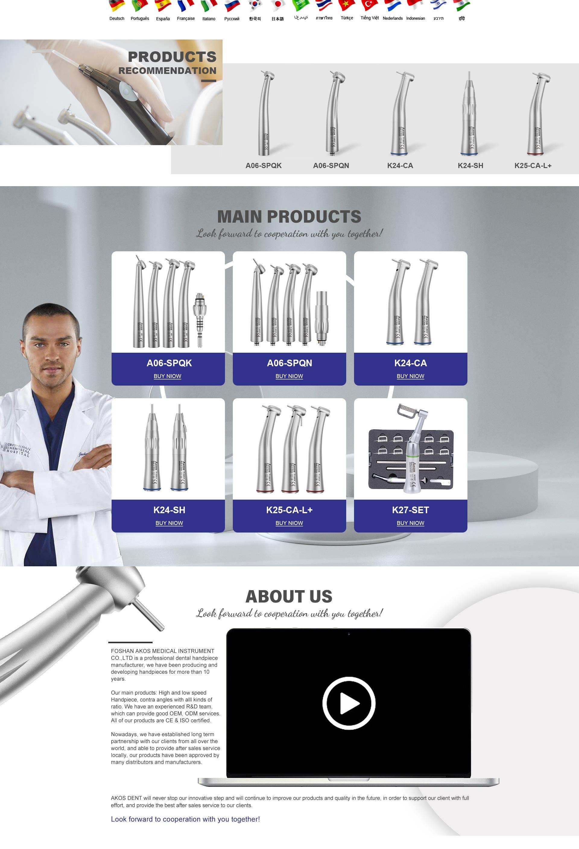 Principaux produits : Pièce à main dentaire à grande vitesse, pièce à main dentaire à basse vitesse, unité dentaire, implant dentaire, moteur dentaire électrique